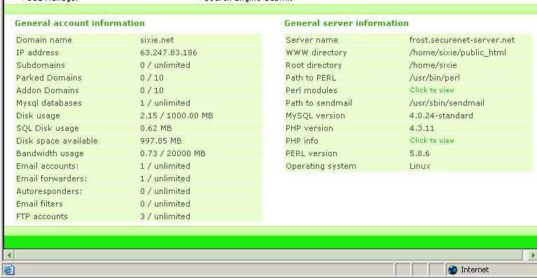 As a website management tool, CPanel (with Ace-Host additions) is INCREDIBLE: I keep picking my jaw off the floor as I come across one feature after another. Yeah, moving your site will be something of a pain, but once you've moved, you'll wonder how you've managed without it! Since a picture is worth a thousand words, here's a few screenshots of the sixie.net CPanel, whose limits are higher than what you'll be getting as a default.